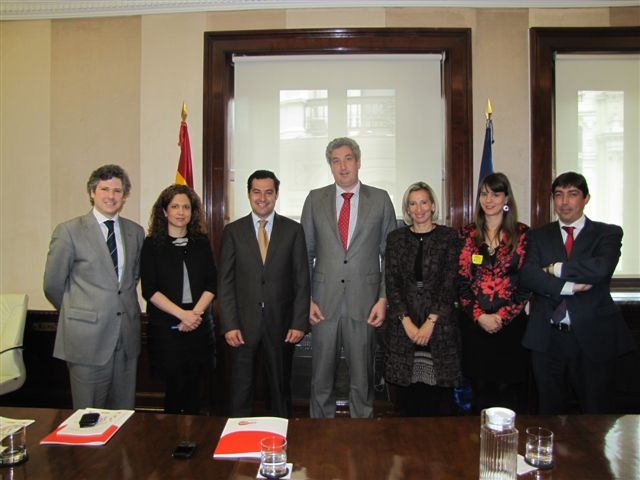 La Confederación Española de Asociaciones de Jóvenes Empresarios, CEAJE, representada por el Presidente, David Alva, Gustavo Antépara, Secretario General y Pilar Andrade, Tesorera, además de varios representantes de AJE’s, se han reunido con Juan Manuel Moreno, Secretario de Estado de Servicios Sociales e Igualdad, para promover iniciativas de colaboración que fomenten la igualdad de oportunidades en el entorno empresarial. El Director General de INJUVE, Rubén Urosa, también ha asistido a la reunión de trabajo.