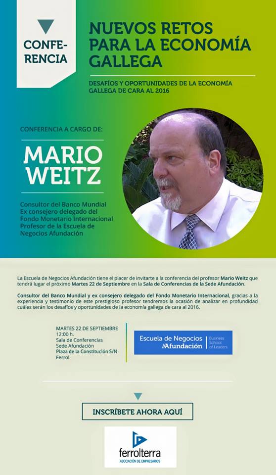 El 22 de septiembre se celebró en la Sede Afundación de Ferrol, la conferencia "Nuevos Retos para la Economía Gallega". Desafíos y Oportunidades de la Economía Gallega de cara al 2016