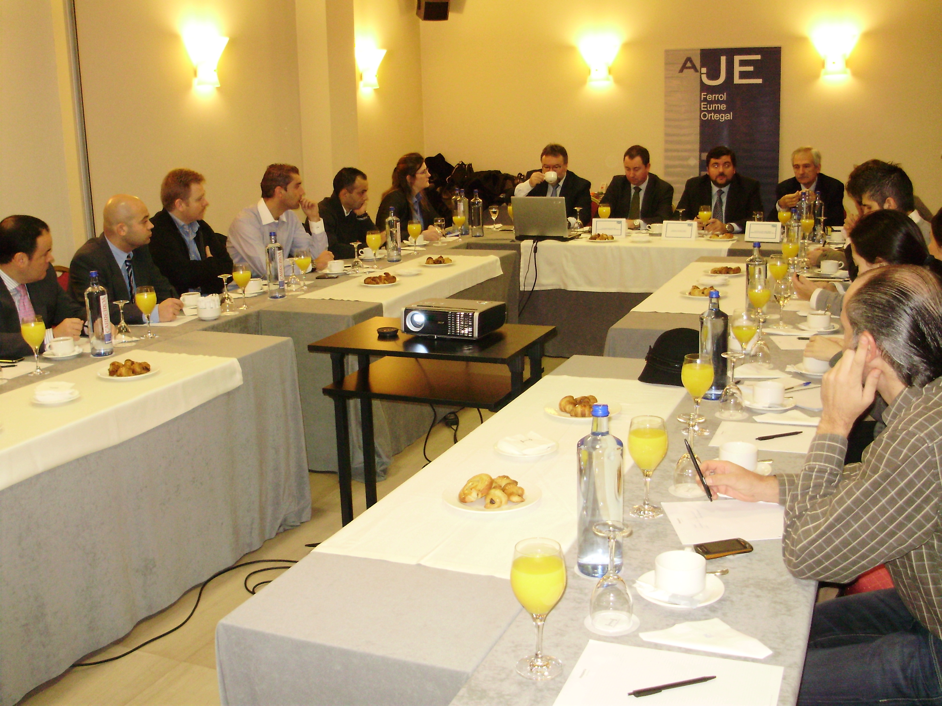 El Jueves 25 de Noviembre de 2010, a las 9:30 horas,se celebró en el Hotel Hesperia de la Ciudad de Ferrol un Desayuno de Trabajo con la Autoridad Portuaria en el que nos acompañaron D.Julio Hernández Sanmamed ( Jefe del Departamento Comercial y de Desarrollo),D. Francisco Santiañez Orero (Presidente de la Asociación Provincial de Consignatarios, responsable de la empresa estibadora Terminales Marítimas de Galicia, que opera en Ferrol y Consejero de la Autoridad Portuaria de Ferrol-San Cibrao)y D.Juan José Rodríguez Pita (Jefe De Relaciones Institucionales)