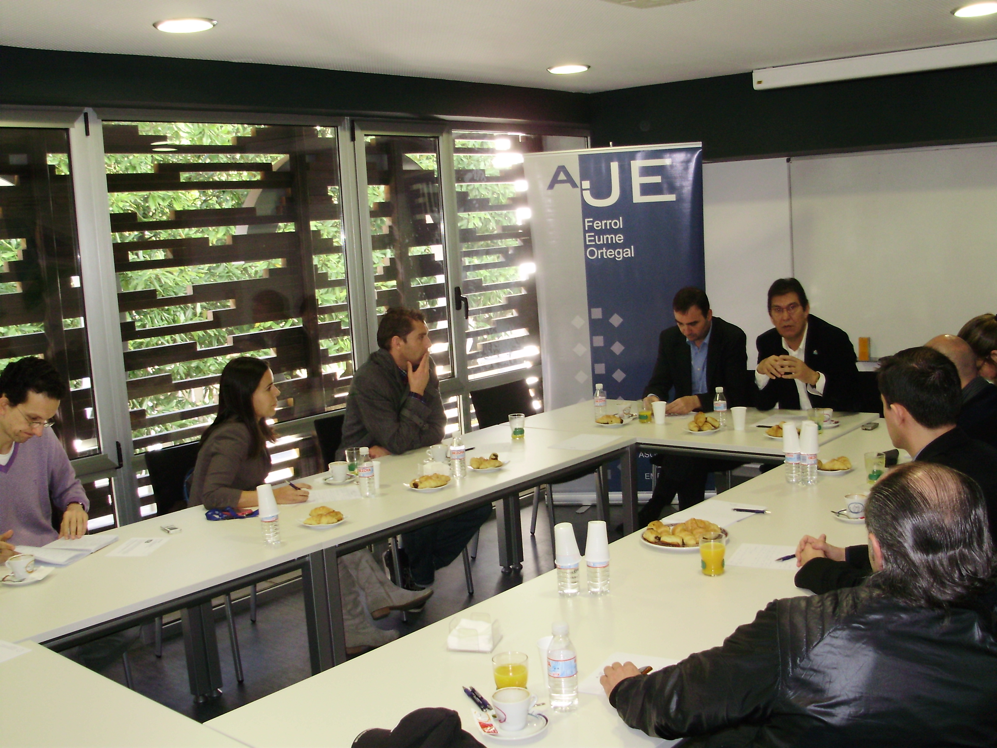El lunes 4 de abril AJE Ferrolterra celebró su primer desayuno de trabajo con los candidatos a la Alcaldía de Ferrol y Narón. En este desayuno contamos con la presencia de Xoán Xosé Pita y Pablo Villamar, candidato a la Alcaldía de Ferrol y Narón respectivamente y un grupo de jóvenes emprendedores que trasladaron sus inquietudes a los candidatos.