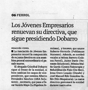 Se nombraron como vocales a Jaime Dario Paz(Noroeste Soluciones), Helena Barrera(Galatea Ferrol), Mónica Muíño (Fisio-Che-Ben), José Manuel Rilo(Rilo maquinaria) e Irma Otero(Diexfe)